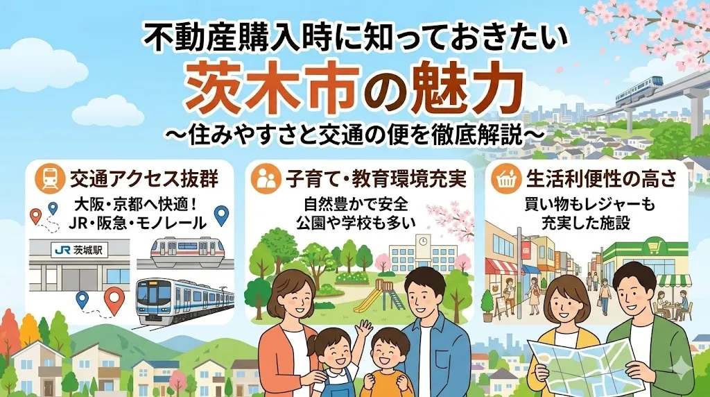 不動産選びにおいて、周辺住環境は資産価値や住みやすさに直結する重要な要素です。特に大阪府茨木市では、交通アクセスの良さや生活利便性、自然環境のバランスが大きな魅力となっています。駅近の利便性や、スーパー・病院・公園など生活インフラの充実度は、日常の快適さだけでなく、将来的な資産価値維持にも影響します。