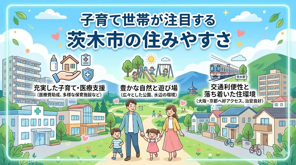 茨木市は子育て世帯にとって住みやすい地域として高い評価を得ています。その理由は、保育園や幼稚園、小中学校がバランスよく配置されていることや、公園・児童館など子ども向け施設の豊富さにあります。また、行政による子育て支援策も充実しており、育児相談や一時預かりサービスなど、子育て世帯の負担を軽減する取り組みが進められています。